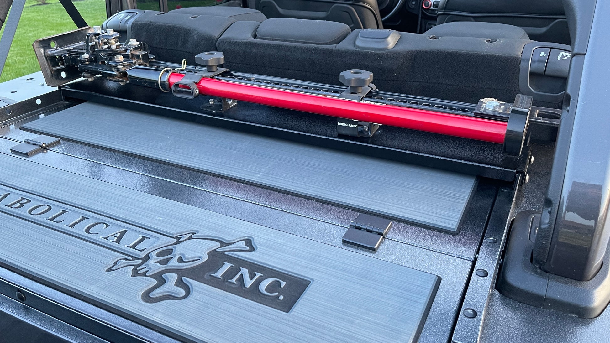 The Slipstream Rail Rack is the perfect solution for securely mounting your favorite accessories above your enclosure—keeping them out of sight, yet always within reach. Designed to work seamlessly with the Slipstream tie-down rails, the Rail Rack uses existing 2-hole or 3-hole mounting points, so no drilling or modifications are required. Whether it’s a PowerTank, firearm rack, HiLift jack, shovel, or other essential gear, the Rail Rack ensures everything stays hard-mounted, organized, and ready for action.